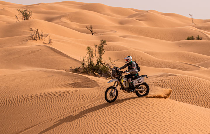 I've been racing since 2015. I was the 2nd place winner in Motul Xtreme Rider class at Africa Eco Race 2022. Other accomplishments: Abu Dhabi Desert Challenge and Rallye du Maroc finisher (2023), 4 National Champion titles in Rally Raid, 2 class podiums in FIM Europe Rally Raid Cup.